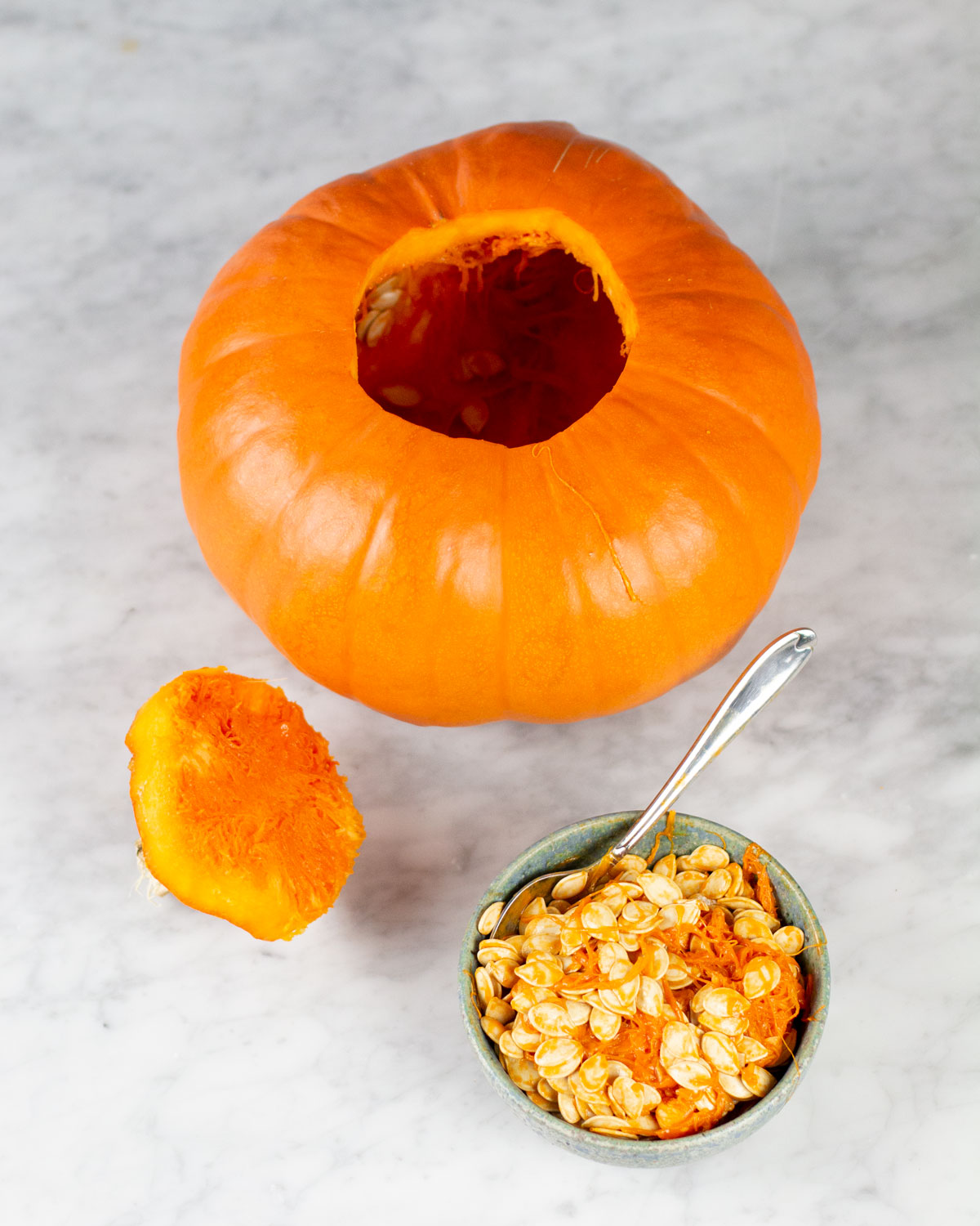 3. Lyft bort toppen på pumpan och gräv ut allt innehåll med en sked.