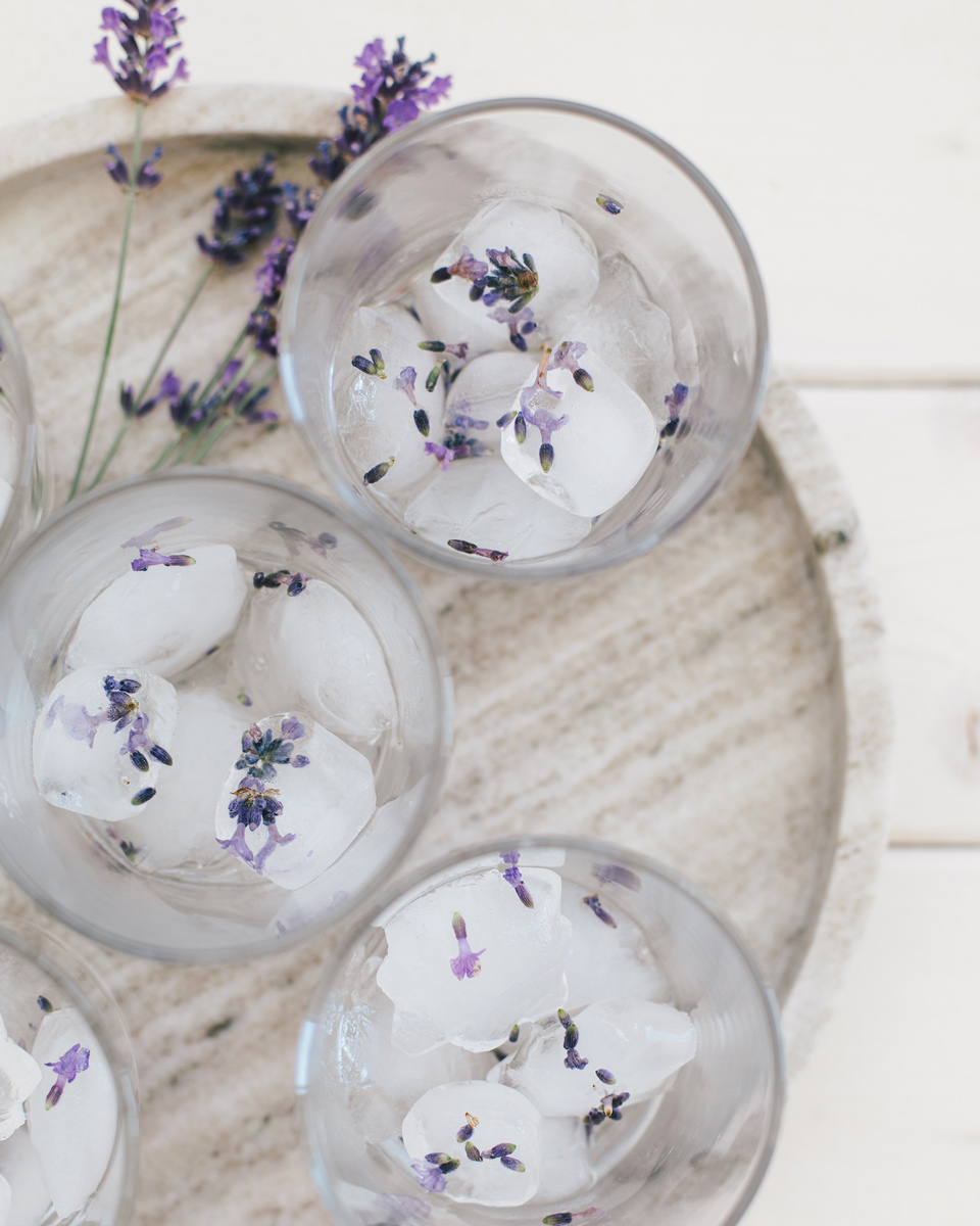Du kan också ta loss rosenblad och frysa in i kuberna, om du odlat dina rosor giftfritt. Variera med blad från örter som citronmeliss och mynta!